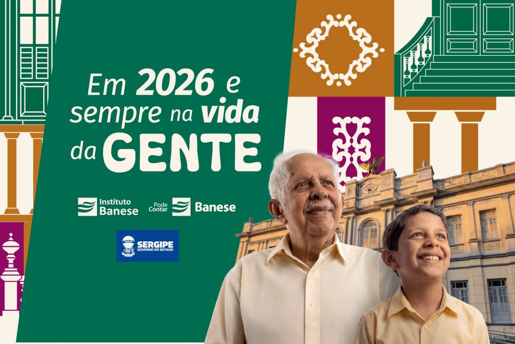 Na mensagem do Banese dois "jovens" contemplando o futuro.