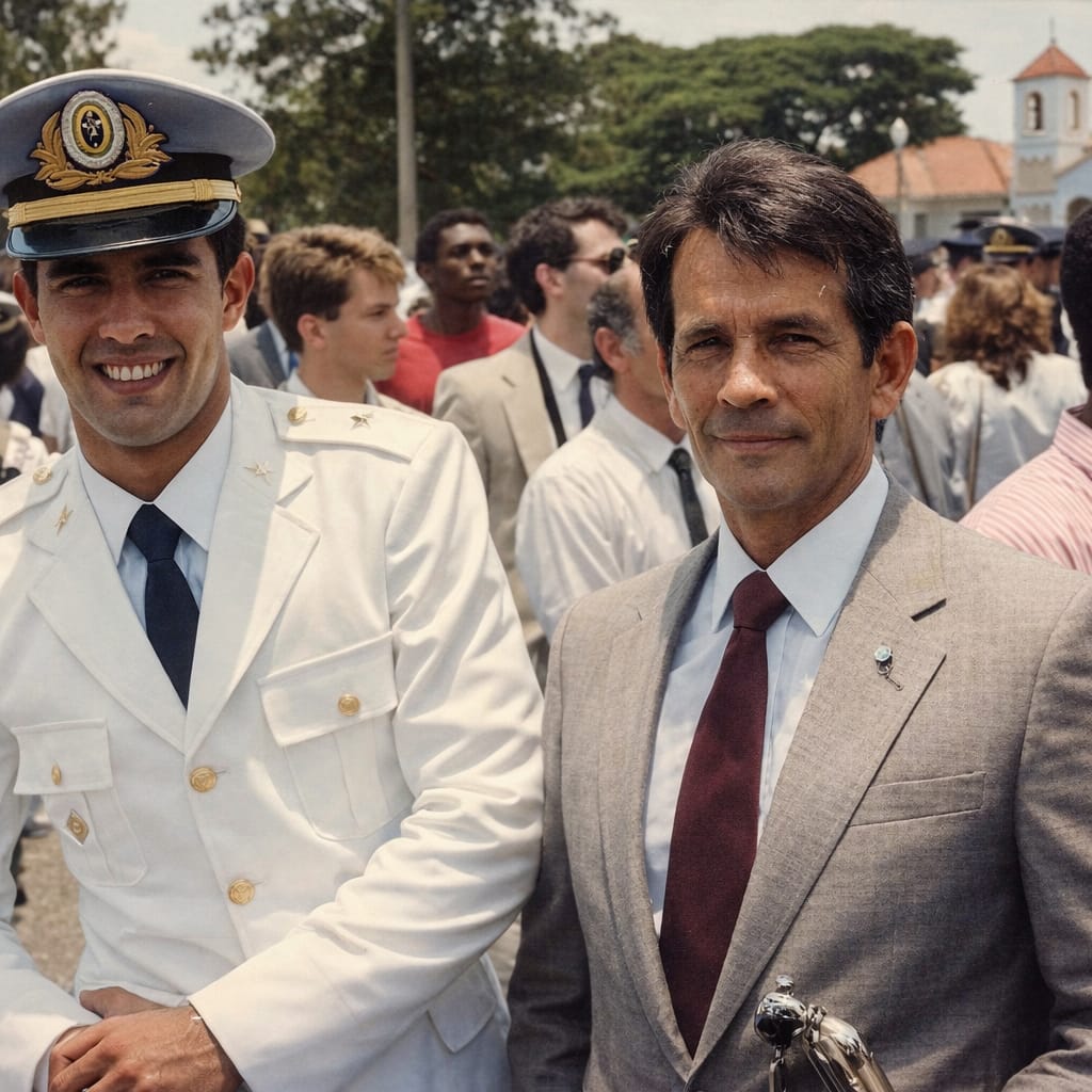O pai o Coronel Lourival, no dia em que o hoje General de 4 estrelas, recebia o seu espadim de cadete